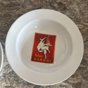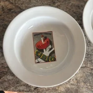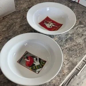 Set of 2 Pottery barn vintage posters spaghetti bowls. Measure 10 inches across.