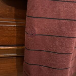 Rustin Red with small black lines. Lulu Lemon size small polo shirt. Barely worn. Soft material.