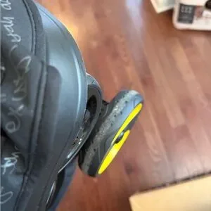 Experience convenience with the Doona car seat that effortlessly transforms into a stroller. Designed in sleek black with vibrant yellow accents, it's perfect for stylish, on-the-go parents.