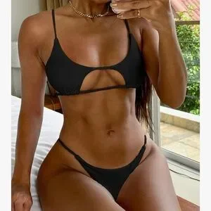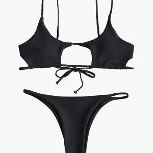 Chic black bikini with a modern design. Perfect for sunbathing and swimming. Didn’t fit & couldn’t return. My loss your gain.