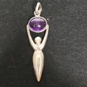 Vintage Moon Mother Earth Goddess Pendant Estate Piece 925 Silver Amethyst