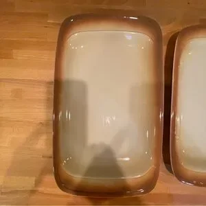 Set of Three Brown and Cream Ceramic Serving Dishes