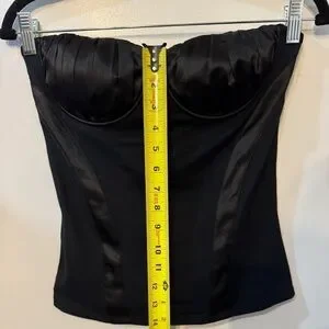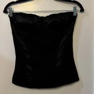 Elevate your wardrobe with this luxe Arden B strapless corset top — a true closet essential for the modern femme. Crafted in a sultry black satin blend, this sculpted bustier top features a structured paneled silhouette, elegant sweetheart neckline, pleated cups with underwire support, and sleek side satin detailing that cinches and flatters your curves.
