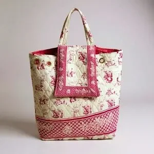 Chic quilted tote with Victorian patterns. Sturdy handles. Perfect for everyday use.