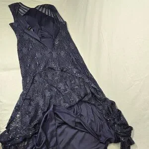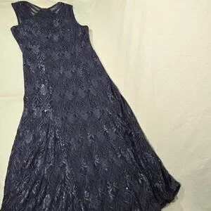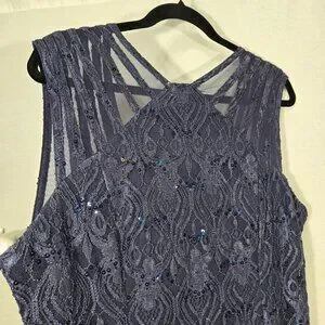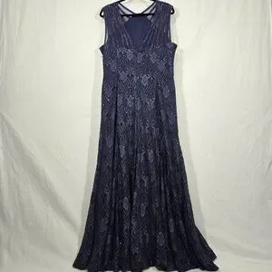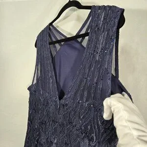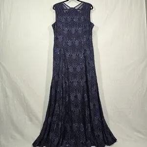R & M Richards Mother Of The Bride BLUE Sequined Lace Sheer Formal Dress Size 16