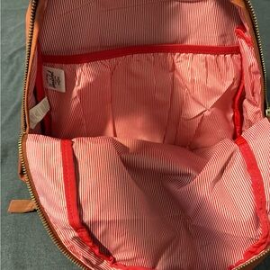 Classic Herschel backpack in burnt orange. Features spacious main compartment. Front zip pocket for easy access.