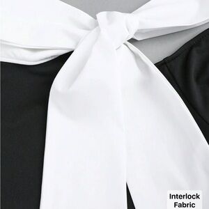Chic black dress with a bold white bow. Long sleeves and elegant design. This dress has never been worn. The dress does not flare as much as in the photos, still a beautiful dress, just a little too big for me. I’m happy to give it a new home.