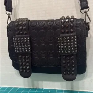 This edgy shoulder bag features a striking skull embossed design with studded accents. Perfect for adding a bold statement to any outfit. No Brand