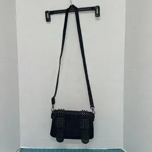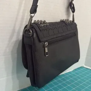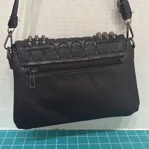 Studded Black Skull Embossed Crossbody Bag Purse Vegan Faux Leather 10x6.5x2