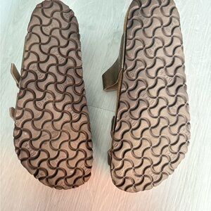 Women’s size 40 (equivalent to 9) Birkenstock brand Metallic rose gold Mayari Sandals. These were only worn for less than a month and could no longer wear due to an injury. The soles were beginning to form to feet and that is the only wear, They have been kept in a smoke free home.