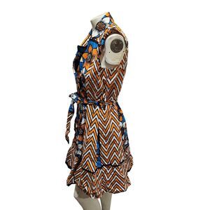 Style: African Ankara Dress with chevron and floral print, double breasted button up with tie