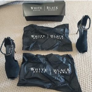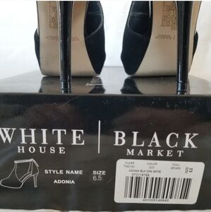 WHBM White House Black Market Adonia Black Peep Toe Stiletto Heels Boot 6.5 EUC