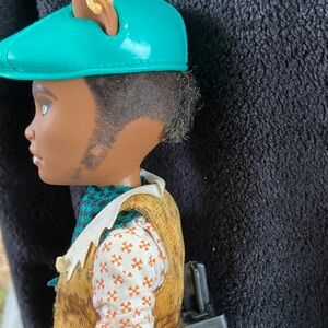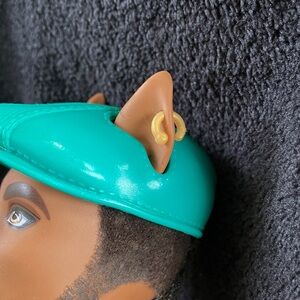Doll features a teal hat and matching scarf, “forbidden love”