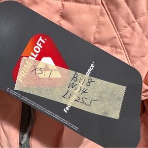 Beige snow jacket featuring a hood and black details. Ideal for winter sports.