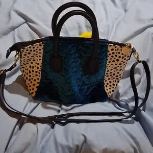 Elevate your style with this chic women's bag featuring a striking quilted blue velvet star pattern with black and white design. The vibrant yellow furry accent adds a pop of color, making it a standout accessory for any outfit, but it can also be removed for a more conservative style.