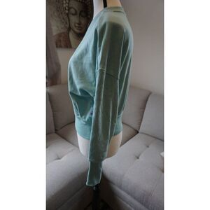 Old Navy Turquoise “Good Vibes” Loose Crew-Neck Cropped Sweatshirt - XS | NWT