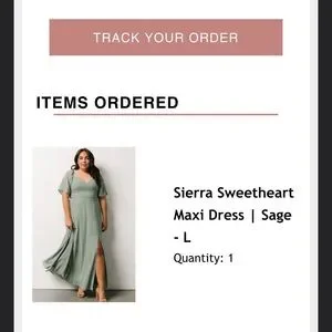 Baltic Born Sierra Sweetheart Maxi Dress in the color sage. I wore this once to a wedding and haven't touched it since! No flaws. No zipper- the back is scrunchy so it stretches! Open to offers
