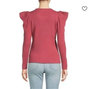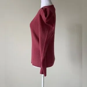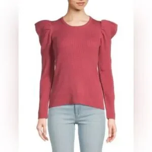 JOE'S JEANS Puff Sleeve Ribbed Long Sleeve Crewneck Sweater in Deep Pink NWOT