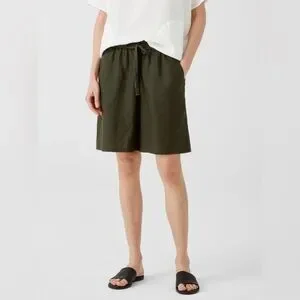 Eileen Fisher Organic Linen Drawstring Shorts Black Size Large