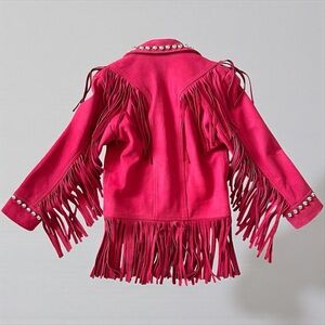 NWT Understated Leather Vibrant Berry Red Studded Fringe Leather Jacket XS