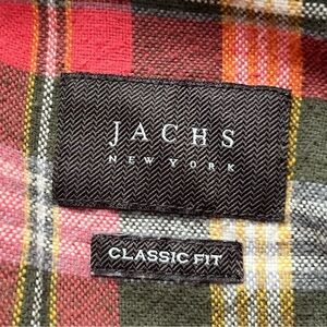 JACHS New York Men’s Classic Fit Plaid Flannel Shirt Red Green Medium