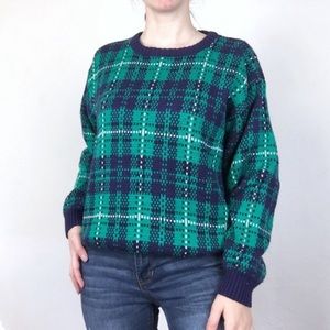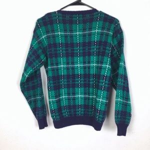 Vintage blue and green plaid cozy sweater size small retro grandpa holiday