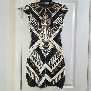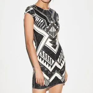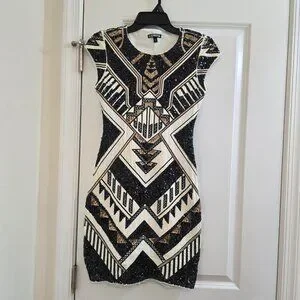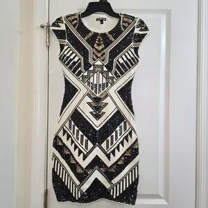 Express Geometric Sequin Bodycon Dress - Aztec, Gatsby, 20's, Holiday Party