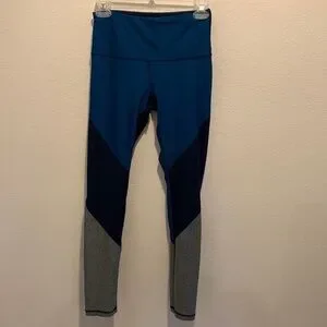RBX Womens Tri colored Legging in royal blue, navy blue, & gray. EUC. Size Small.