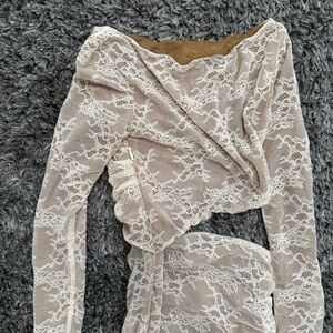 Oh Polly Ingrid Lace Long Sleeve Maxi Dress in Ivory, Size US 0