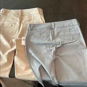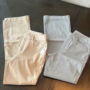 Brand new with tags. 2 pair of Old Navy High Rise pants size 8 Flat front, faux pockets in back. 6% spandex/elastane so they have a nice stretch for comfort but not so much they get droopy.