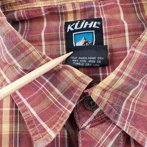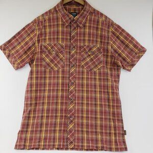 Kuhl Shirt Mens M Red Plaid Suncel Button Up Short Sleeve Hiking Camp Outdoors
