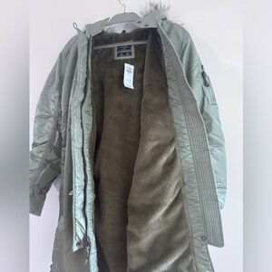 Abercrombie & Fitch Sage Shiny Parka with Fur Trim