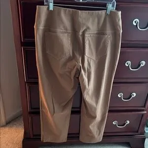 Ankle length dark khaki pants from J Jill feature an easy pull on style for maximum comfort. Front and back pockets and slits at the ankle elevate them beyond your basic pants. Never worn.