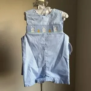 NWT Edgehill Collection Baby Boys Smocked Bunny Jon Jon Romper Sz 12M