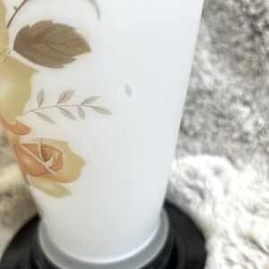 Vintage Frosted Glass Bud Vase Floral Orange Yellow Brown Flowers Gold 7 inches