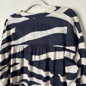 IRO Bold Printed Cotton Lace Up High Low Rattle Relaxed Blouse Top