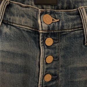 MOTHER The Pixie Dazzler Ankle Fray Distressed Button Fly Jeans