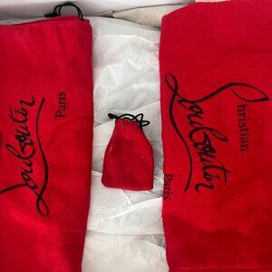 Pointed toe, a 4-inch wrapped stiletto heel, a zippered instep, and signature red-lacquered soles.