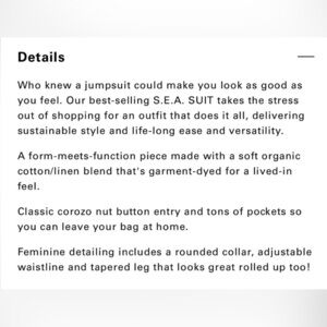Outerknown S.E.A. Suit Pink Linen Jumpsuit Size Small