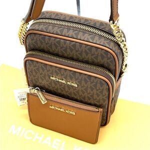 Michael Kors Medium NS Chain Xbody Bag & Small TZ Coinpouch w/ID Brown/Gold