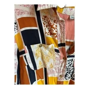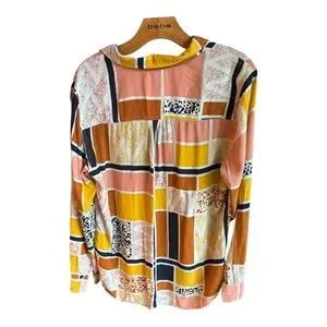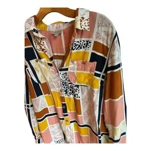 The Odells Lisse Button Down Shirt Size Large geometric Anthropologie Patchwork