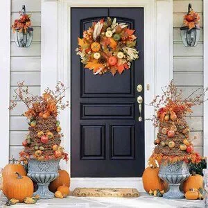 Hanging anywhere : Each fall door wreath comes with a hook so you can hang it on your front door. The front door wreath is made of 4 different colors of pumpkin, a base made of realistic foam pomegranates and berries, pine cones and corn silk, signifying that this autumn wreaths for front door contains all the good wishes and adds a strong autumnal touch to your home. Welcome your guests with this fall door wreaths that will amaze and impress every friend and neighbor who comes to your home!