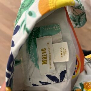 Embrace summer vibes with this vibrant tropical print halter midi dress. Perfect for sunny days, this dress features a colorful pattern with shades of green, yellow, and orange. Ideal for casual outings or beach vacations. Super cute cutout on lower back. Maeve by Anthropologie.