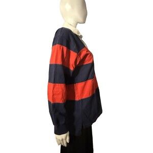 Polo Ralph Lauren Rugby Shirt Blue Red Striped LS Y2K Preppy Sports SZ L (16-18)