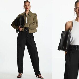 NWT COS Belted High-waisted Linen-blend Pants In Black (sz8)