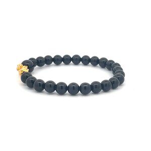 18K Gold Pixiu Piyao Bracelet Gemstones Onyx 6mm Elastic Bracelet Letter L