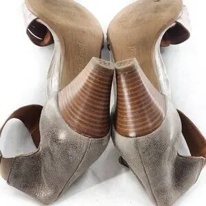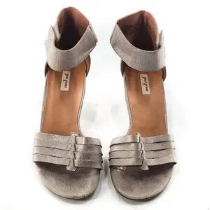 PAUL GREEN Coco Silver Metallic Leather Ankle Strap Sandals Open Toe Hook & Loop Strap Going Out Work Office Special Occasion Evening Wedding Prom Party