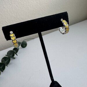 Sterling Silver 925 Hoop Earrings with Yellow Enamel Hearts – Colorful Jewelry