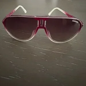 Chic Carrera aviator sunglasses featuring a stylish pink-to-white fade frame with gradient lenses—classic and eye-catching. These pre-owned shades are in great condition, with one minor scratch on the lens that’s practically invisible when worn. Please note: no case included.
