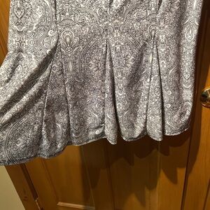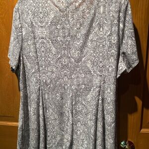 Chic paisley design. Short sleeves. Comfortable fit. Pit-pit 24”. Length 27.5